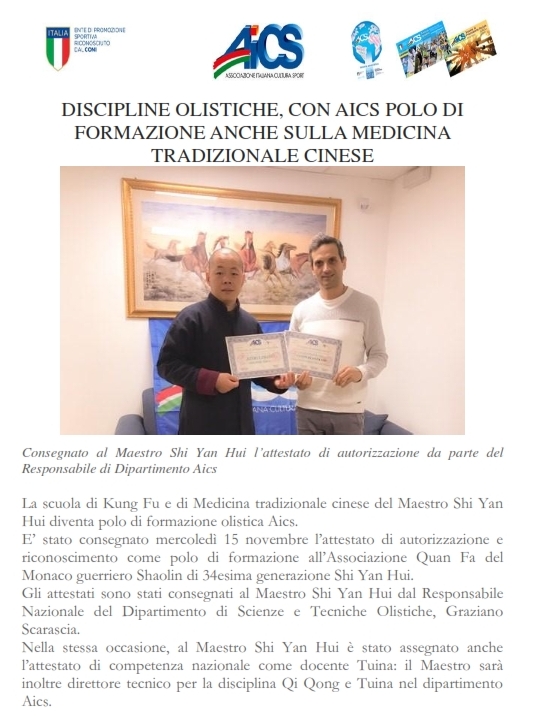 Discipline Olistiche con AICS polo di formazione anche sulla M.T.C. – 15 Novembre 2017