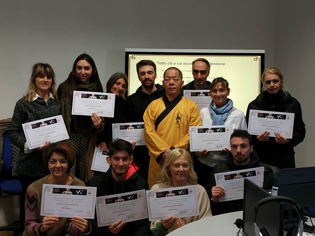 In questi due anni, i partecipanti del corso, hanno seguito con grande attenzione l’insegnamento del Maestro Shi Yan Hui volto alla spiegazione dei principi culturali e all’approfondimento della conoscenza teorico-pratica della Medicina Tradizionale Cinese, iniziando dalla storia della tradizione medica e le sue teorie principali, i meridiani, gli agopunti, il Qi, il sangue, e trovando applicazione nel Qigong, Shaolin kungfu, agopuntura, tuina, coppettazione, moxibustione, meditazione Chan; con generosità e disponibilità, il maestro, ha cercato di trasmettere il ricco insieme culturale della tradizione Shaolin che ha attraversato i secoli, tramite il suo metodo didattico basato al tempo stesso sulla connessione tra teoria e pratica; infatti, in costante relazione alla teoria inclusa nel piano di studi, durante il pomeriggio, ha mostrato i dodici movimenti Yijinjing necessari per l’allungamento del Jin, per rafforzare gli organi interni e i visceri, per la realizzazione di una corretta circolazione del Qi nel corpo, per regolare lo Yin e lo Yang, insomma, per prevenire, curare malattie e favorire la longevità.